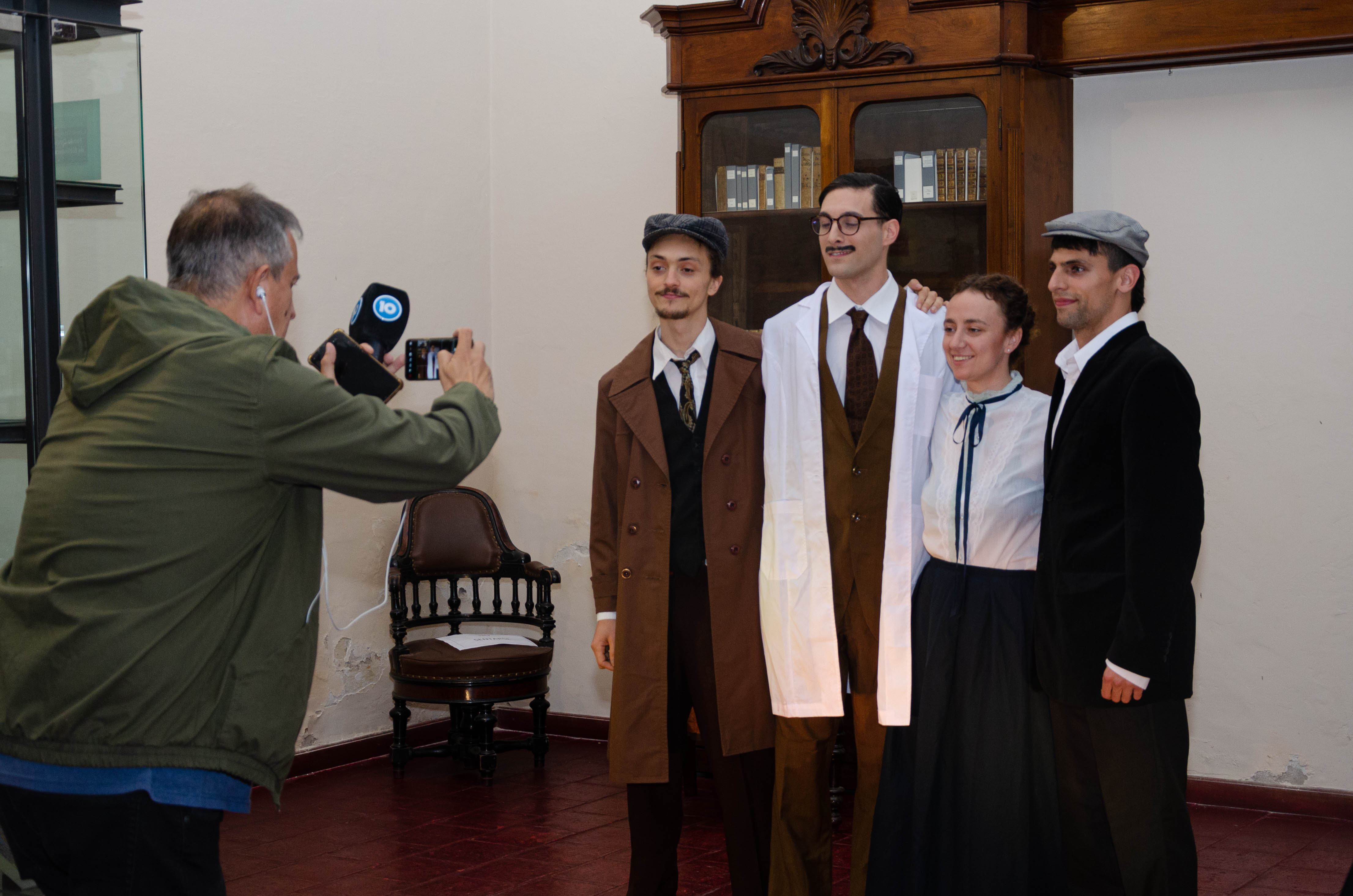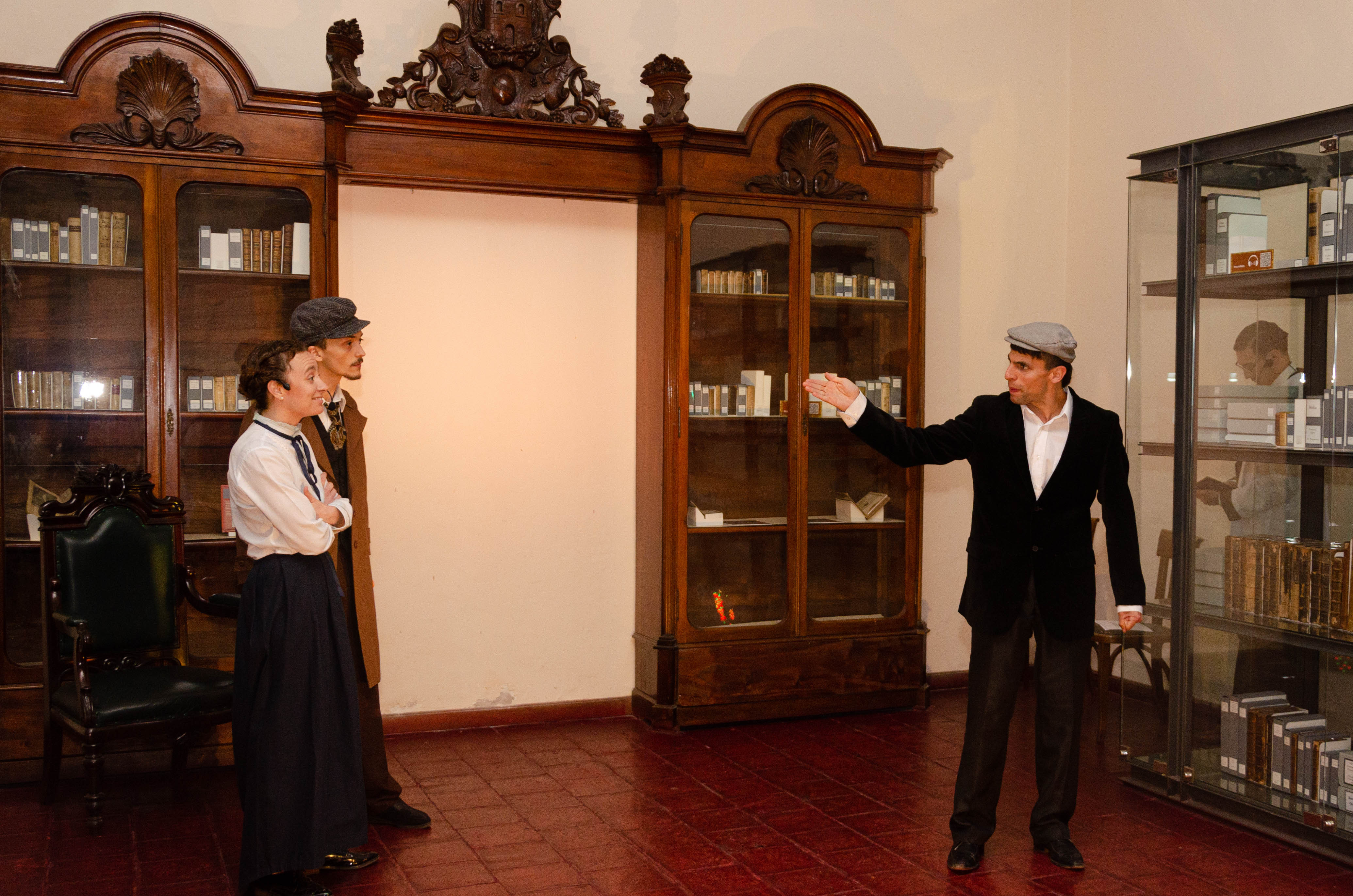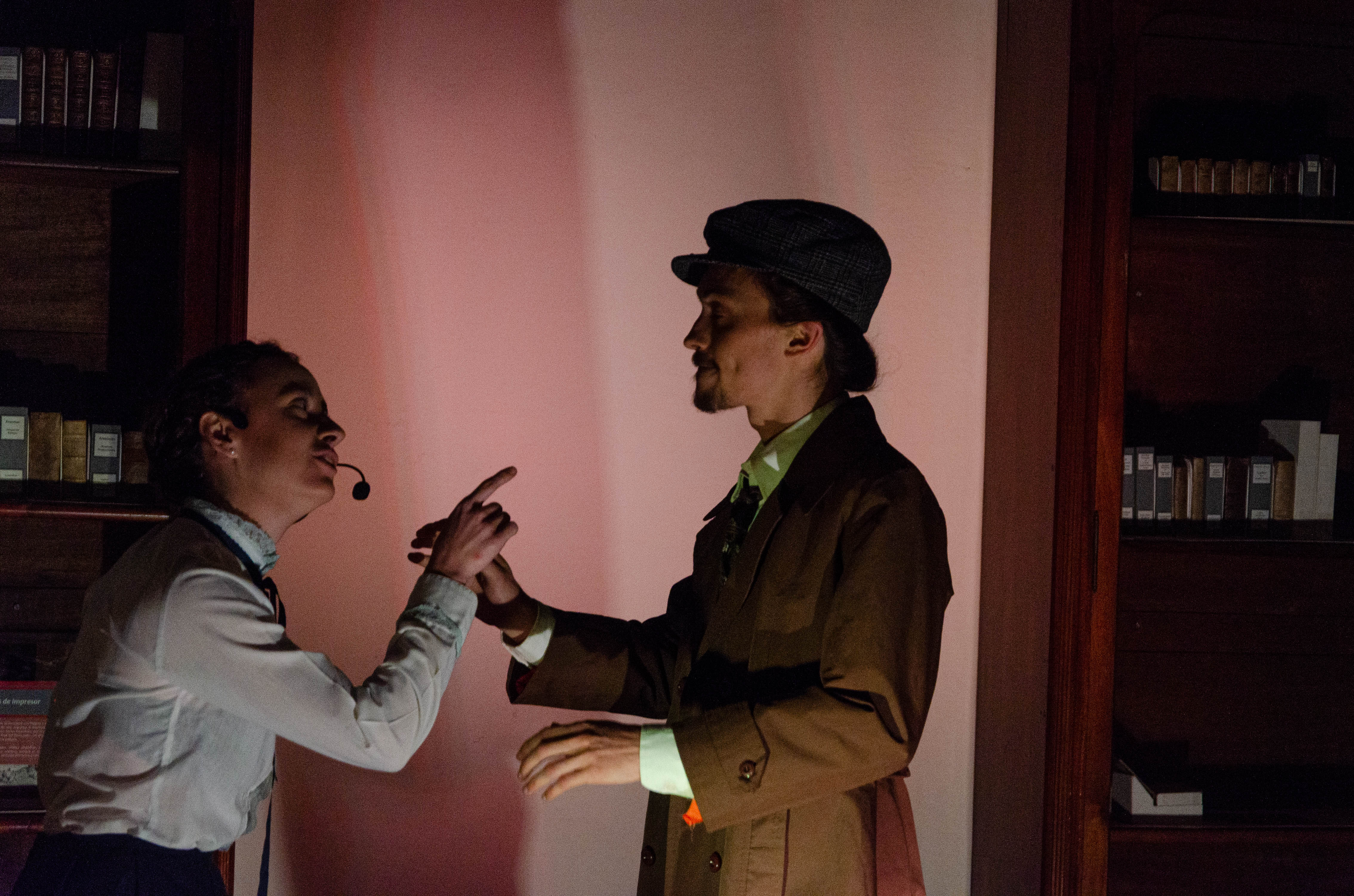 A cargo de la actriz, Pina Gonella, el actor Santiago Barbero y estudiantes de la Lic. en Teatro: Iván Olmedo, Jerónimo Neuen Borgogno.