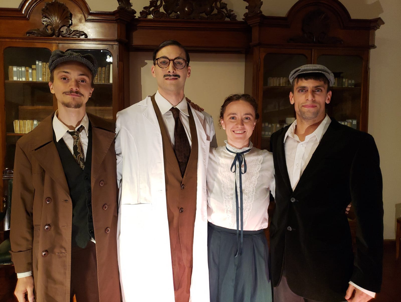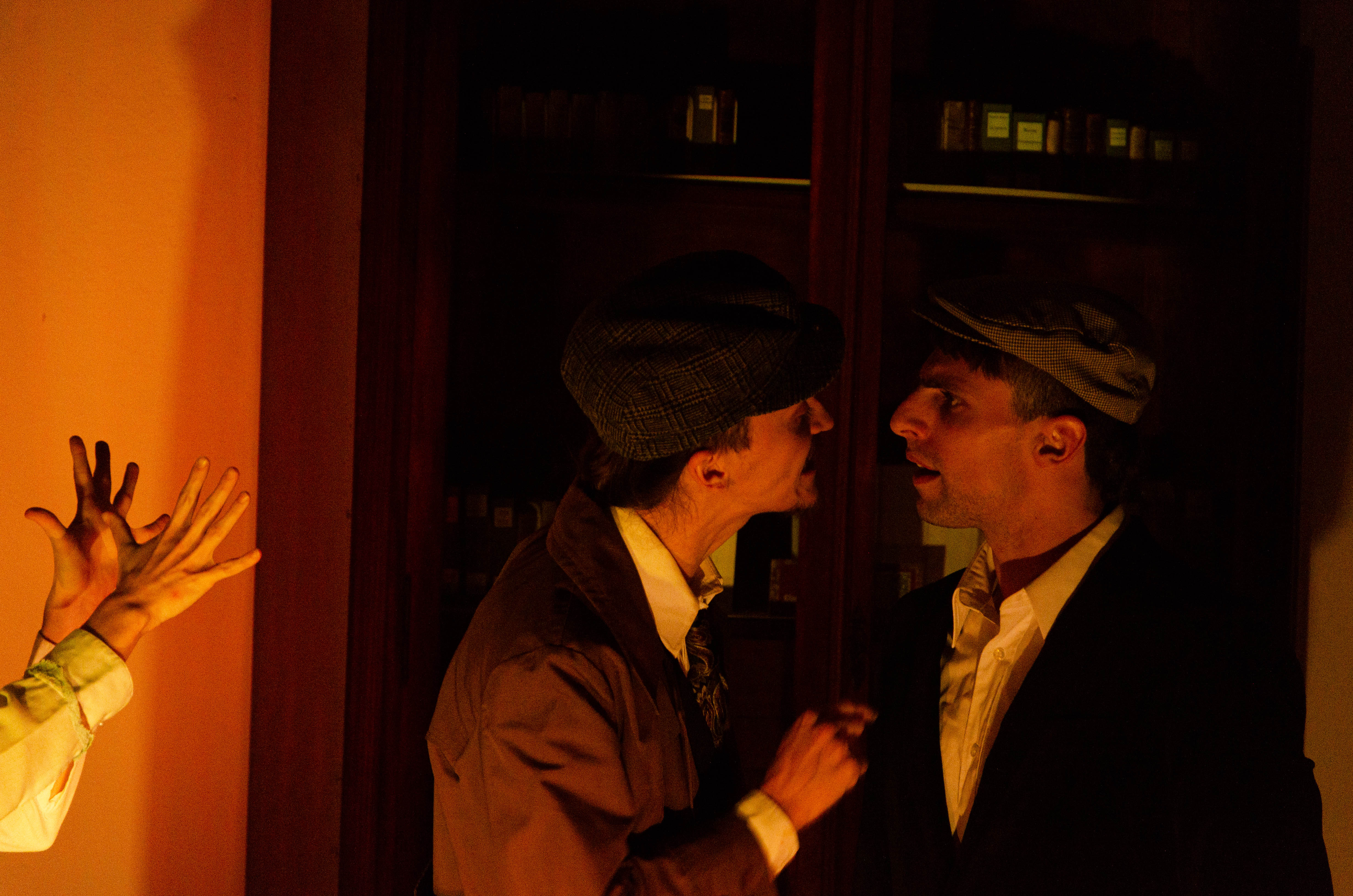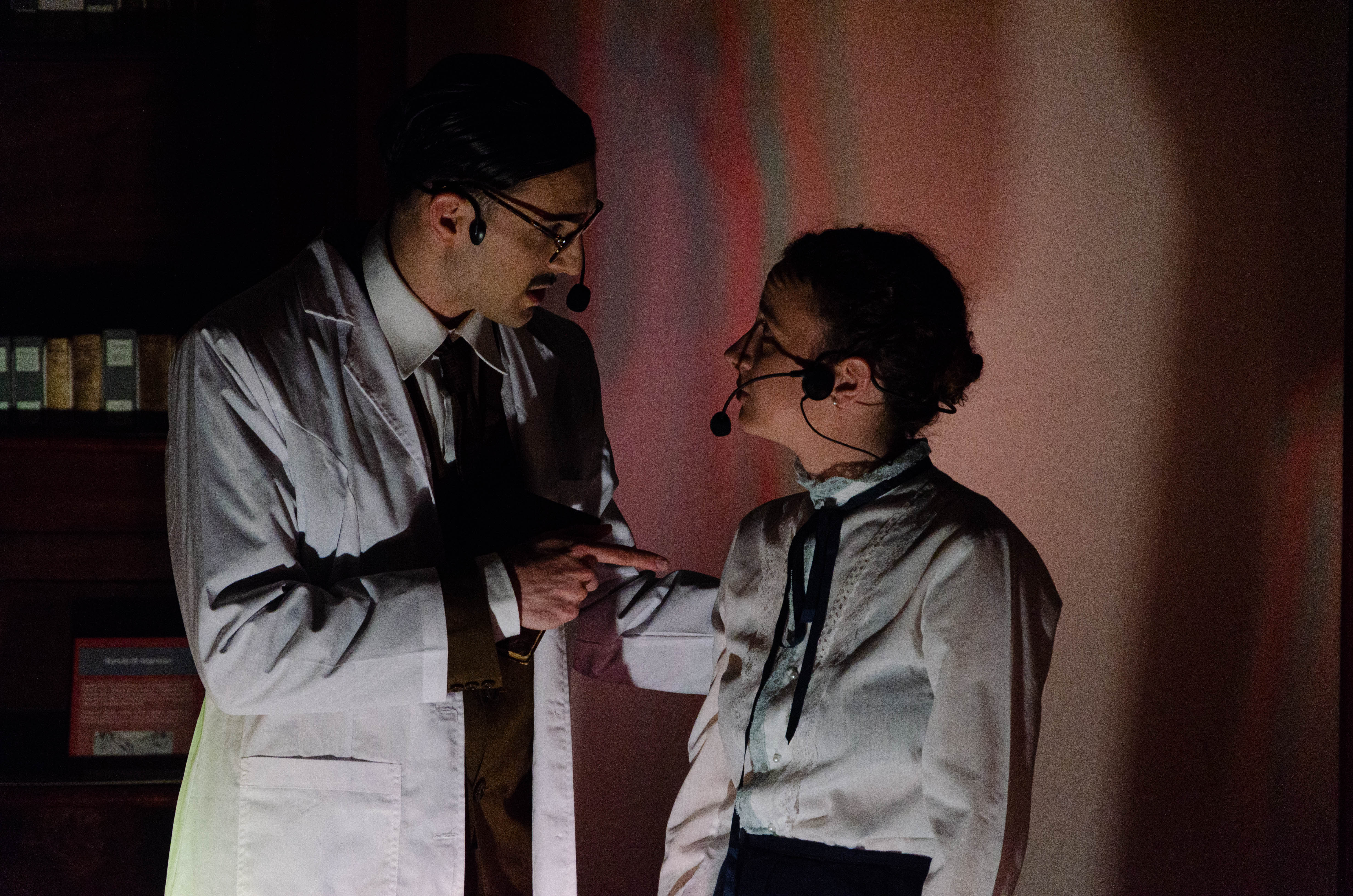A cargo de la actriz, Pina Gonella, el actor Santiago Barbero y estudiantes de la Lic. en Teatro: Iván Olmedo, Jerónimo Neuen Borgogno.